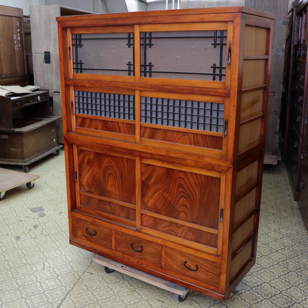 コピー:アンティーク水屋重ね箪笥 拭き漆
